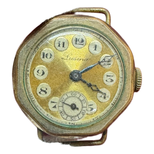 "Lusina" was a respected Swiss brand (part of Pery Watch Co.), based in Geneva, known for their reliable movements. This is evidenced by the movement still functioning after over 100 years! (Service history is unknown, so a professional inspection by a watchmaker is recommended).