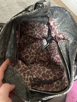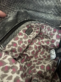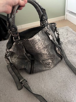 Gray Guess bag with snake pattern. Removable shoulder strap and zippered details. Slight wear, see last picture. Y2k 2000s. Tise: _ria_. Vinted: pikkumyy112