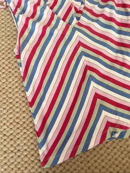 Striped stretch top, shoulder with ruching drawstrings. Size M, length about 50 cm and armpit-to-armpit measurement unstretched about 40 cm