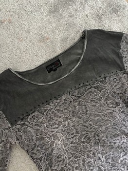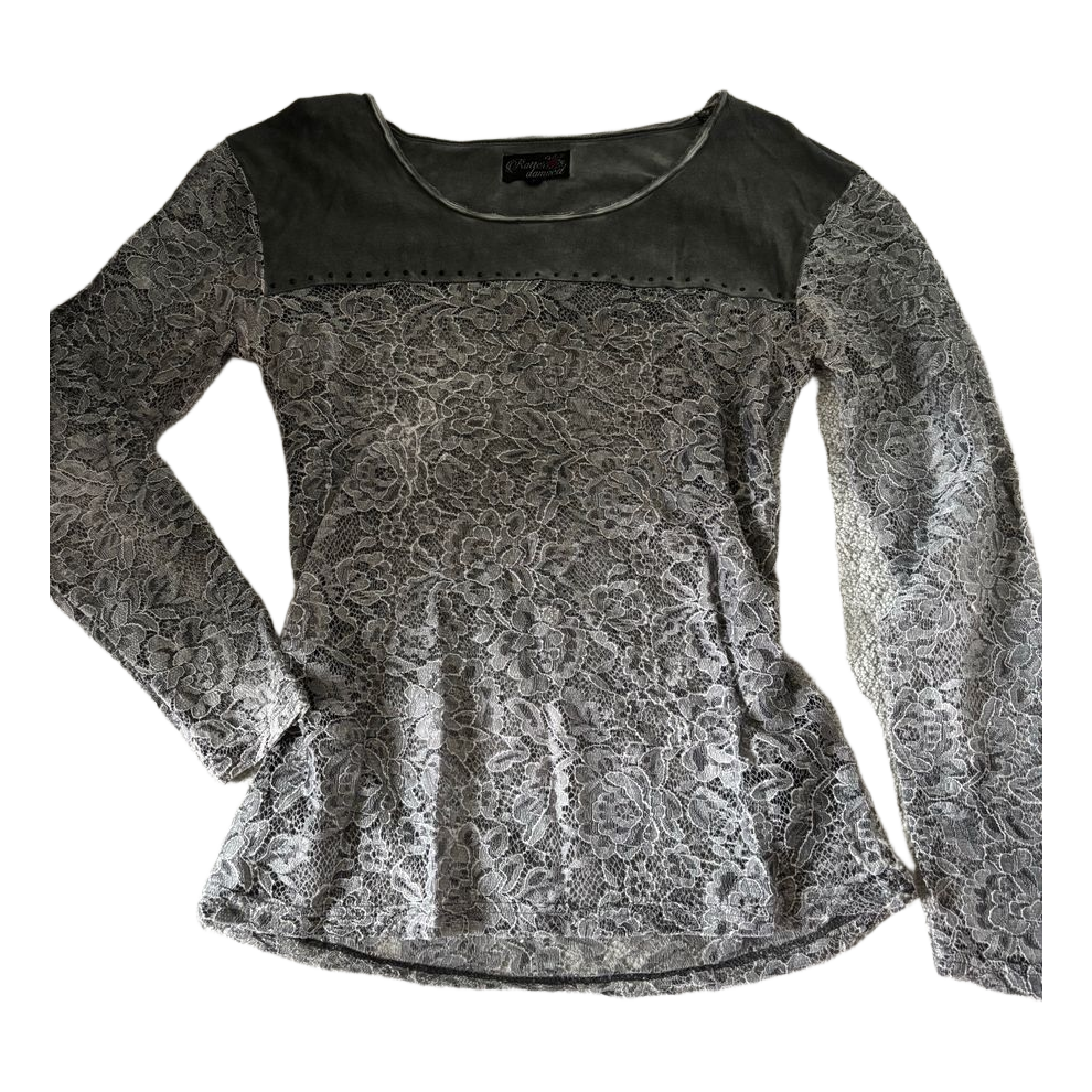 Grey long-sleeved lace top. Size S. Y2K 2000s. Tise: _ria_. Vinted: pikkumyy112