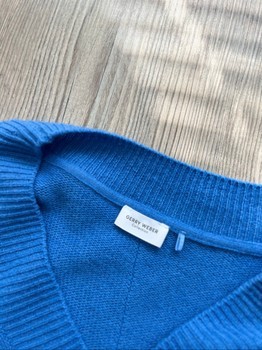 Lovely soft blue knit, size M. Material wool/cashmere. Relaxed fit. Length about 71 cm and armpit-to-armpit measurement about 53 cm.
