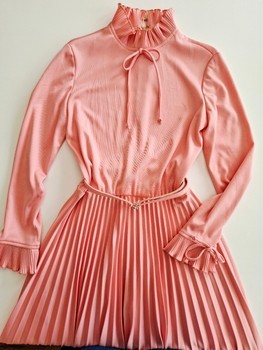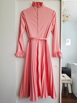 British vintage pleated pink midi dress