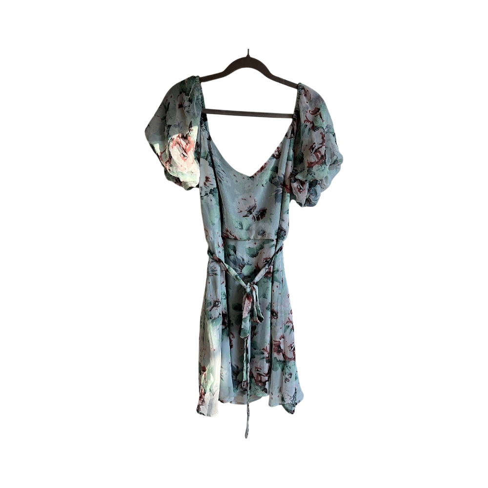 Light and summery dress from Nelly, with a belt. The material is festive and there is a zipper at the back. In excellent condition, worn at only one party.