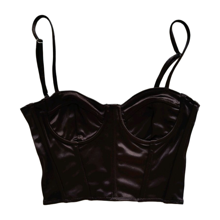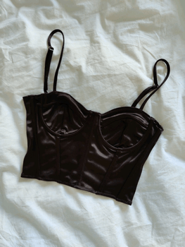 Unused gorgeous satin corset top. Zip at the back. Color black-brown. Code SV1080 🌷