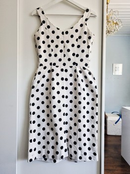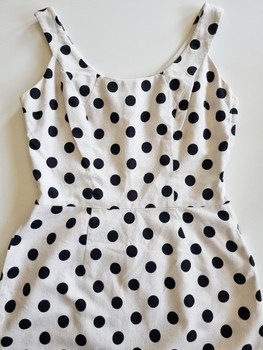 Absolutely charming Marilyn-style dress with a classic black-and-white polka-dot pattern.