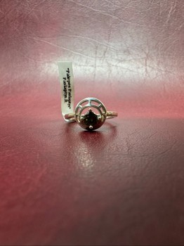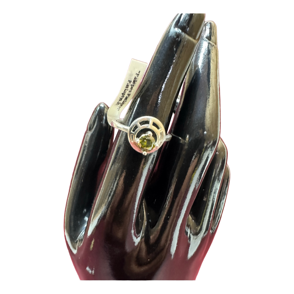 Designed in a minimalist style, adorned with a natural peridot stone. The color of the stone can vary from olive green to yellowish tones, depending on the lighting.