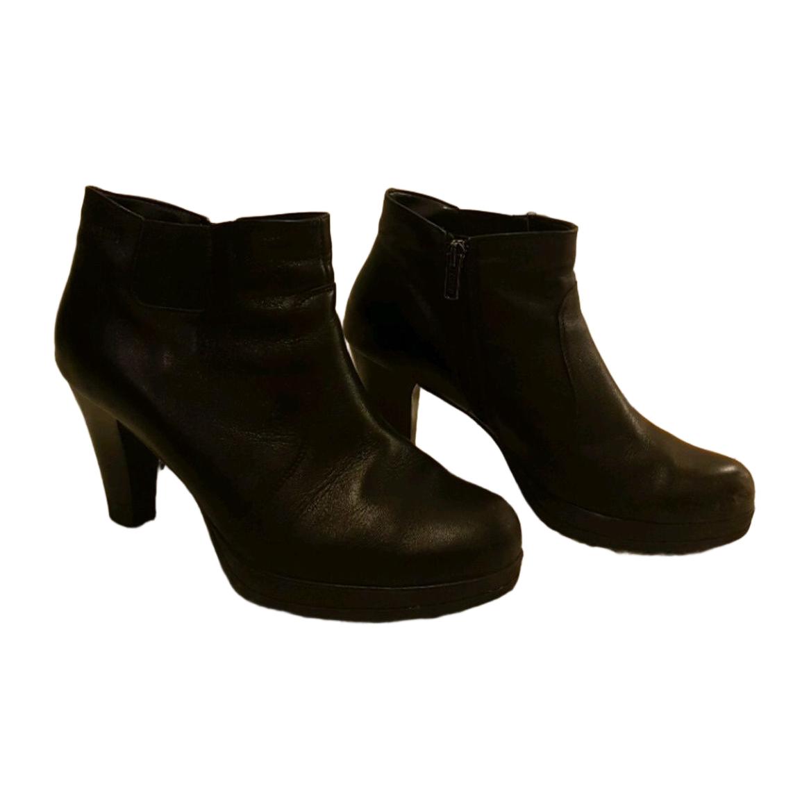 Janita leather ankle boots, with a modest heel, comfortable to walk in! The leather has some signs of wear; with shoe cream these can be concealed :)
