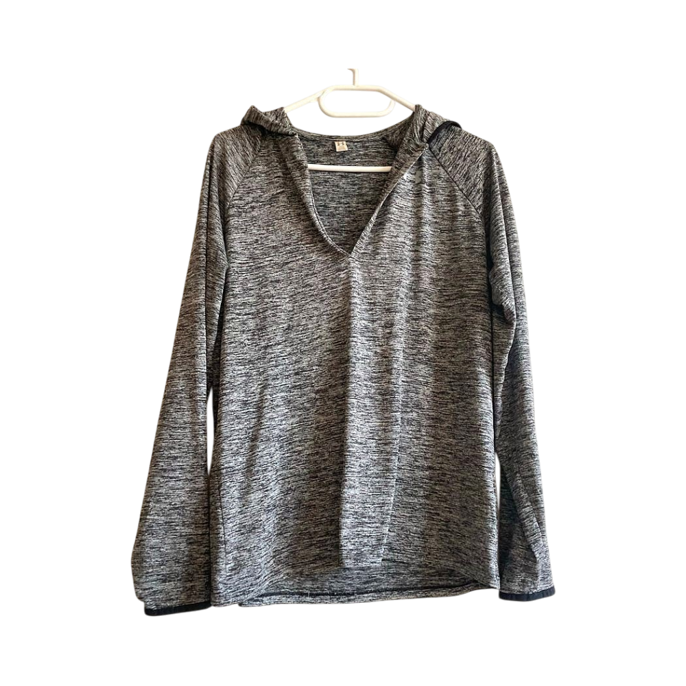 Comfortable and high-quality Under Armour grey melange hooded long sleeve training top. Features a V-neck, hood, loose fit and quick-drying fabric. Perfect for gym workouts, running or as a lightweight layering piece. Soft, breathable and comfortable to wear. In good condition.