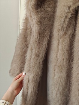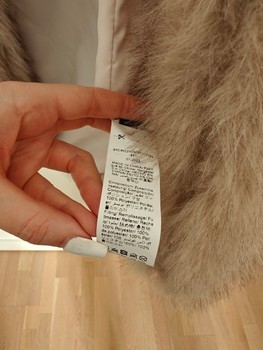 Light faux fur coat. Made of polyester. Not worn even once. On me it comes over the knees.