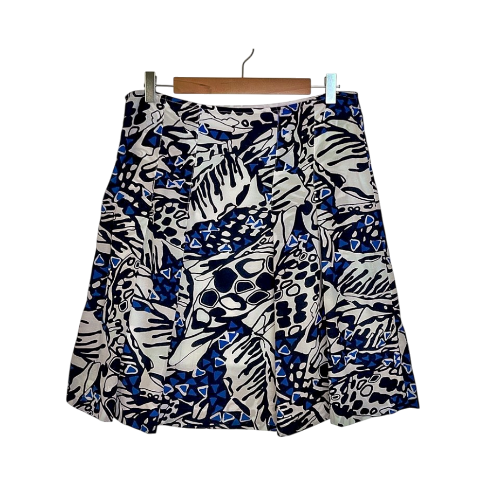 Patterned A-line skirt, waist 40 cm, length 55 cm. Invisible zipper. Cotton-viscose blend, lining fabric 100% cotton, airy and lightweight fabric. Excellent condition.
