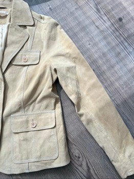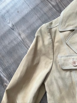 Klassinen mokkatakki, koko 36. Siistissä kunnossa, aran värin vuoksi pientä käytönjälkeä. Pituus noin 57cm ja kai kai mitta noin 45cm. Silkkisen tuntuinen vuorikangas