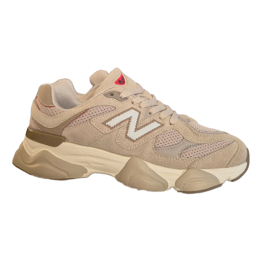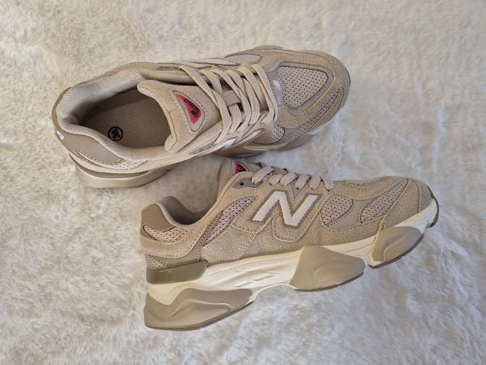 Beige New Balance 9060 sneakers with mesh and suede details. Size 39