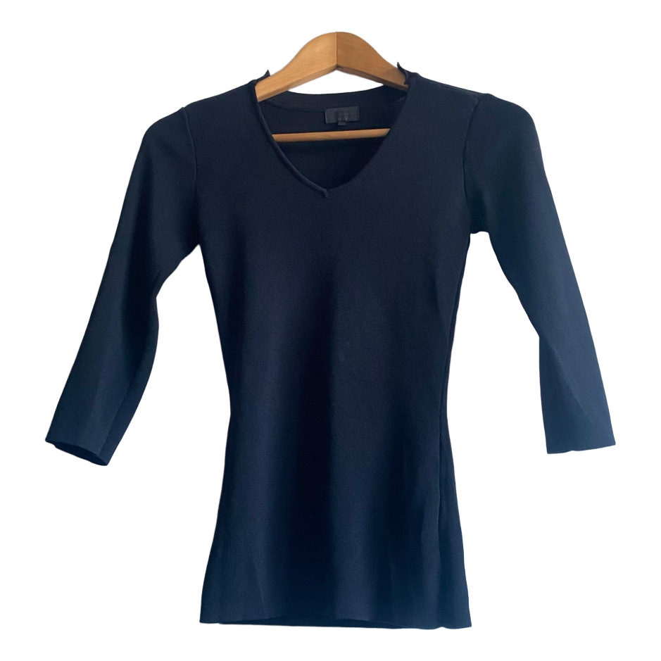 black top, xs top, knit top, minimalist top, fitted top, basic top, capsule wardrobe, v neck top, womens clothing, stretch top, everyday wear, simple style, timeless fashion