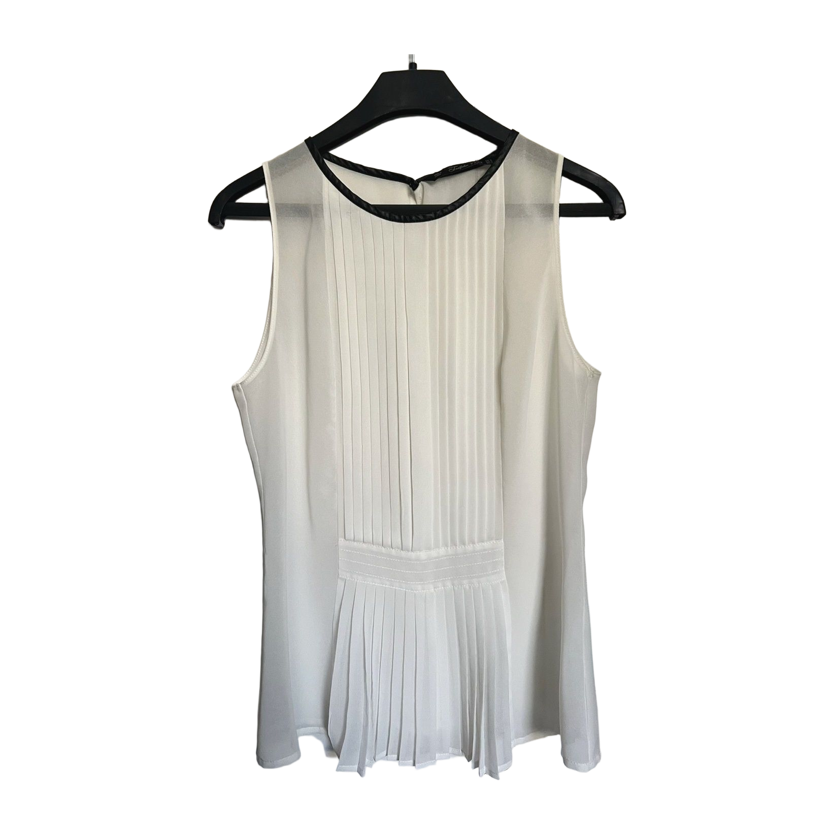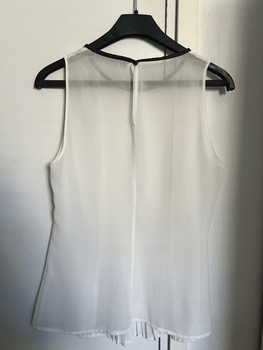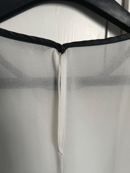 As in the picture, only used a couple of times, Zara's sheer white beautiful shirt, size S. Collar of black leather-like material. At the back of the neck snap-button fastening (see last picture).