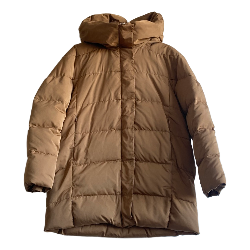 Mango MNG Womens Oversized Down Jacket Brown Hooded Puffer Coat Size S