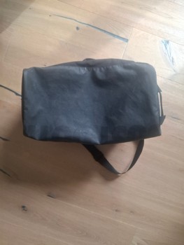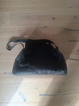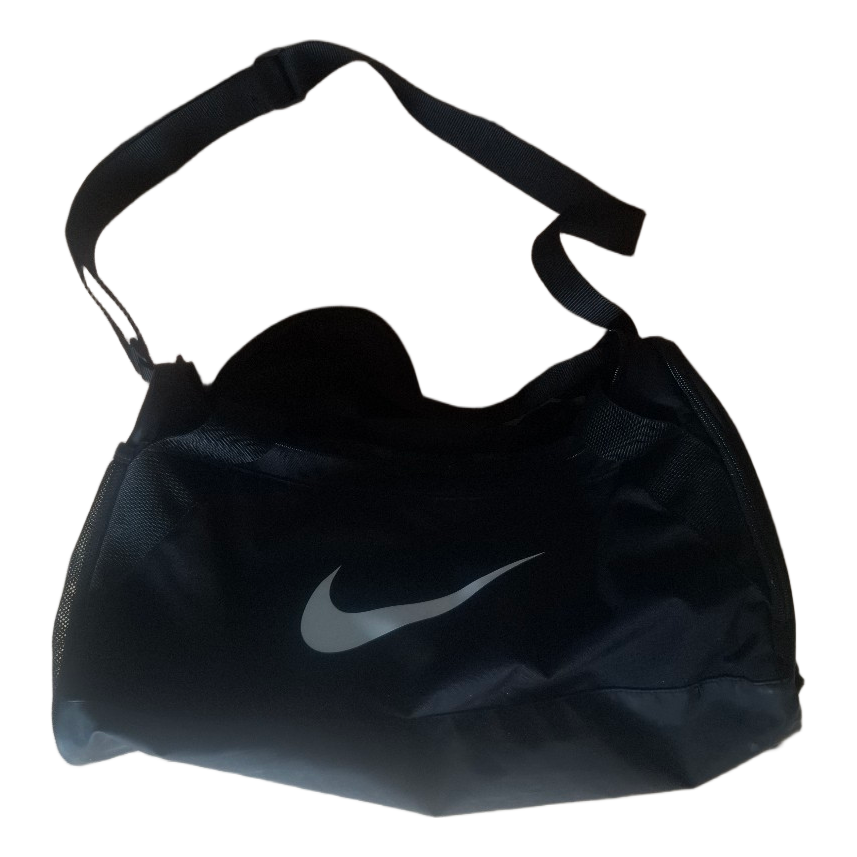 Black Nike sports bag with zipper.