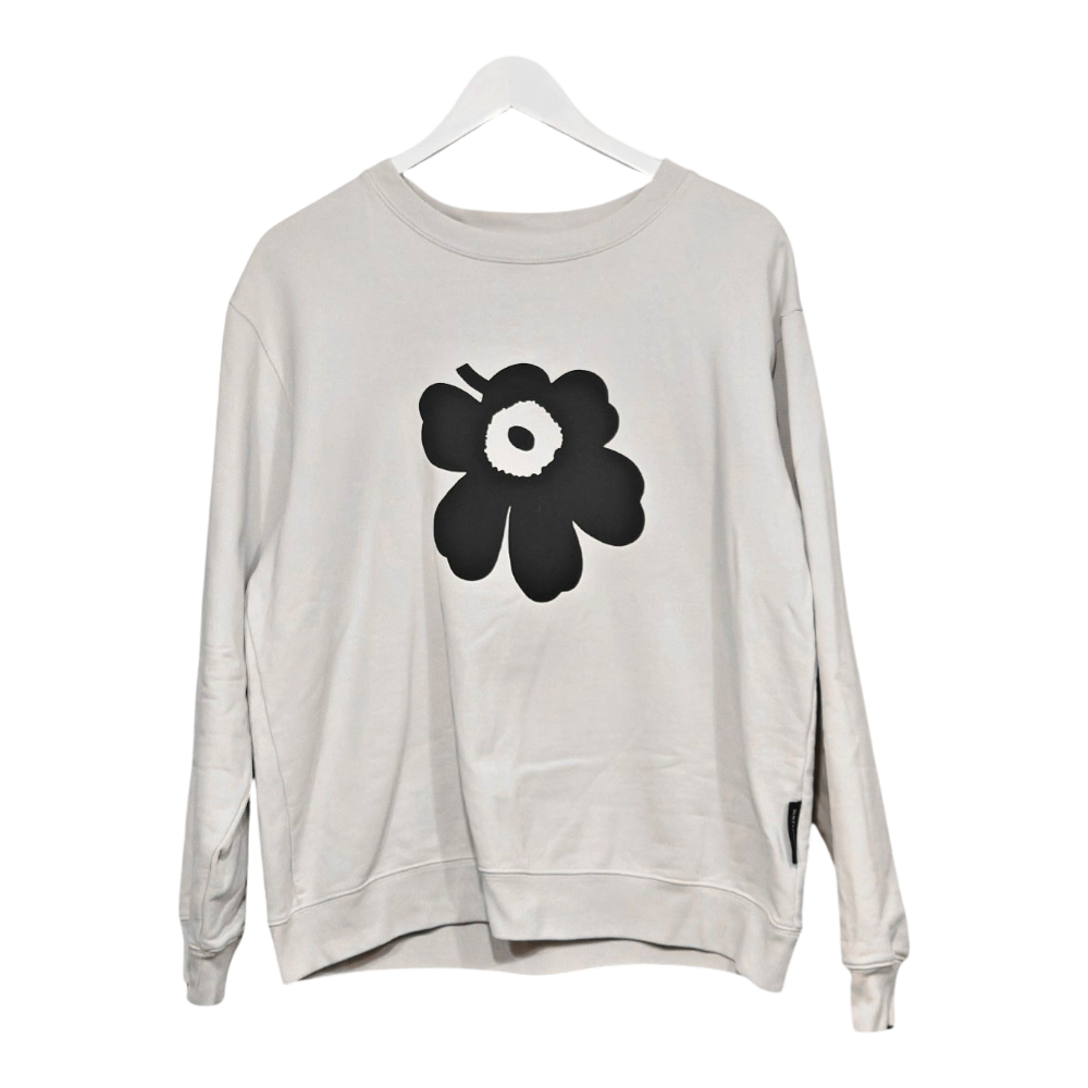 Marimekko classic Unikko collar. Size S, also fits size M. Pit-to-pit approx. 58 cm, shoulder-to-hem approx. 64 cm.