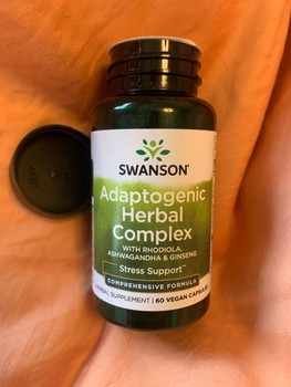 Swanson Adaptogenic Herbal Complex - dietary supplement / natural product. Ashwagandha, rhodiola and ginseng. Contains 60 vegan capsules. Unopened!! Best before 09/28. Bought from iHerb but I can't eat this :(