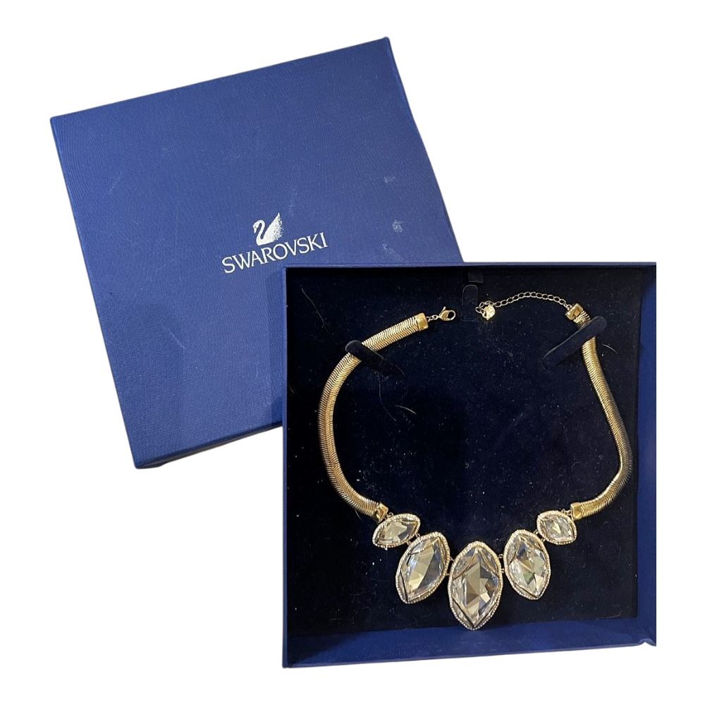 Gold tone statement necklace with large faceted crystal details. Comes in original blue brand box.