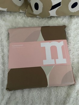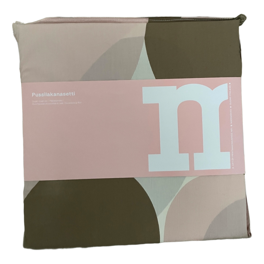 Marimekko Hearts duvet cover 150×210 and pillowcase 50×60. Color: white, sand, light pink. 100% cotton. The duvet cover's top end has corner openings that make changing sheets easier. New and unused, in its package.
