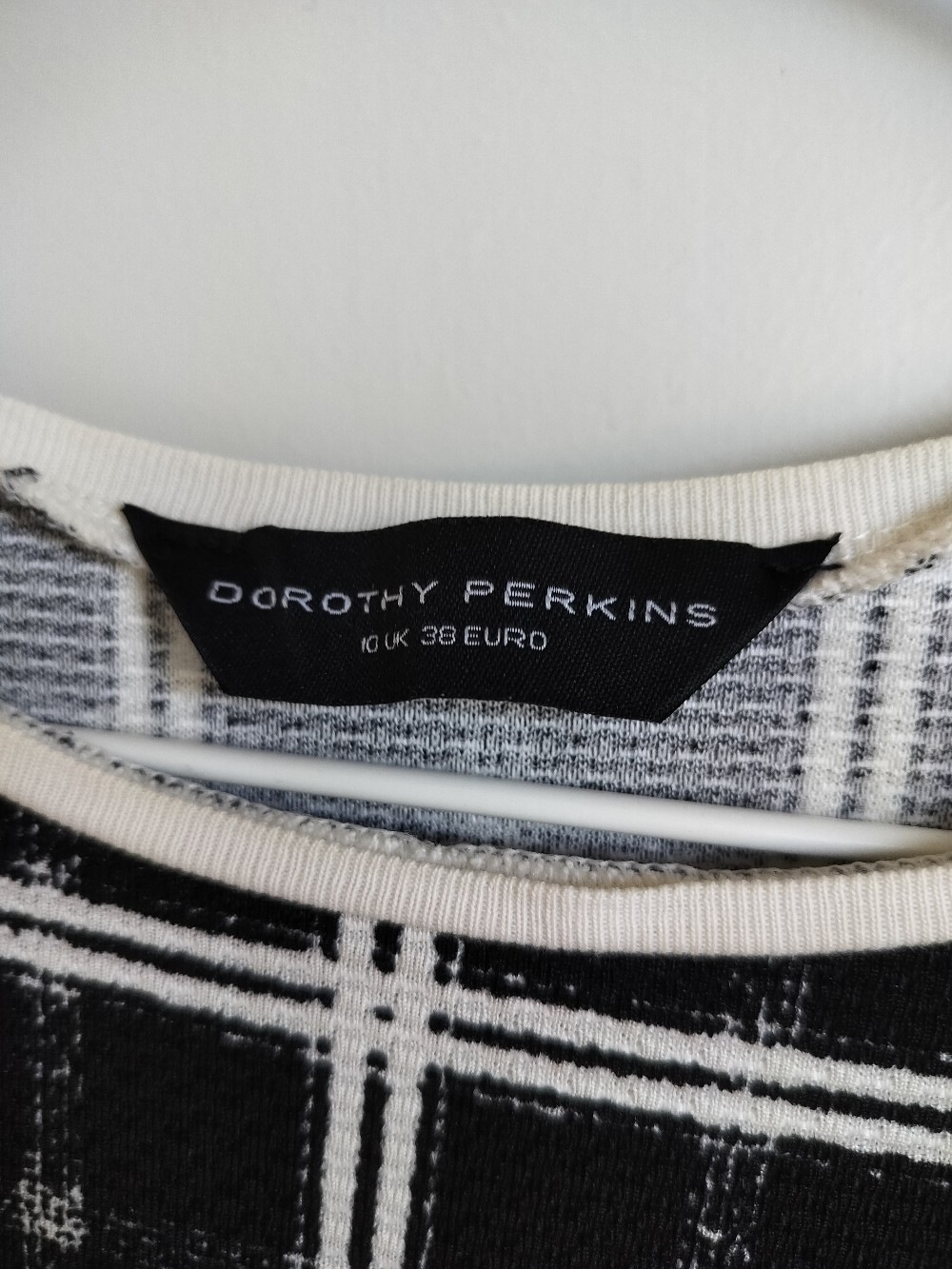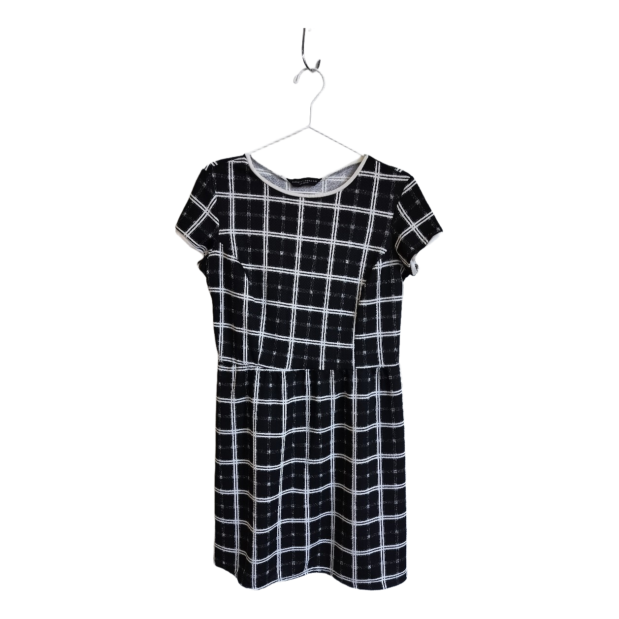 Black and white checkered dress with short sleeves. Features a round neckline, size 38.