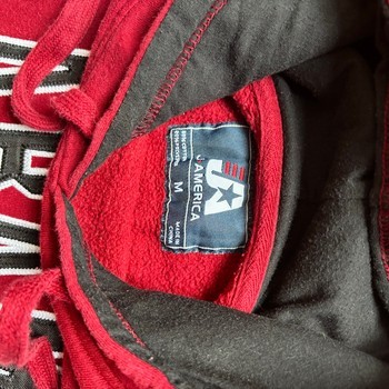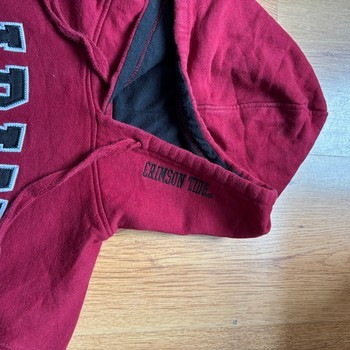 Red Alabama Crimson Tide hoodie with front graphic and drawstring hood. Made of cotton and polyester blend. Size M.