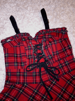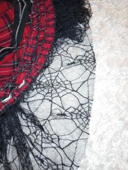 Black gothic dress. Corsets at the front and back. Zipper at the side. Adjustable straps. Spiderweb lace at the hem. High-quality heavy fabric. Brand label removed, but to my knowledge Hell Bunny brand. At least one hole was found in the lace (picture). And inside at the hem a small stain spot that is not visible when worn (I haven't tried washing, so it may come out in the wash) 🕸️