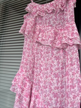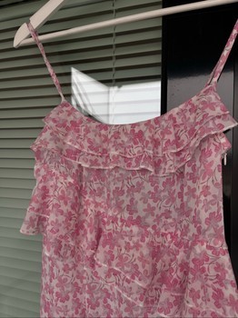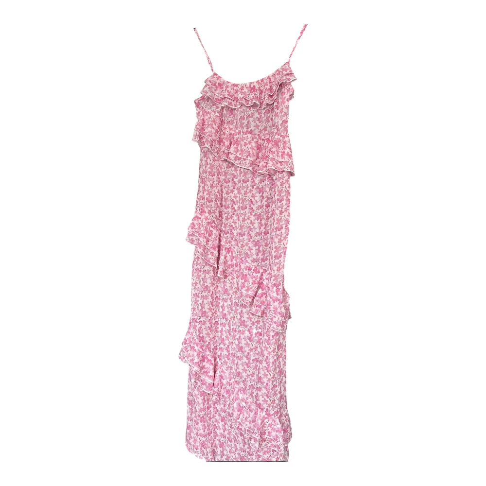 Lovely long pink ruffle dress!