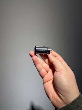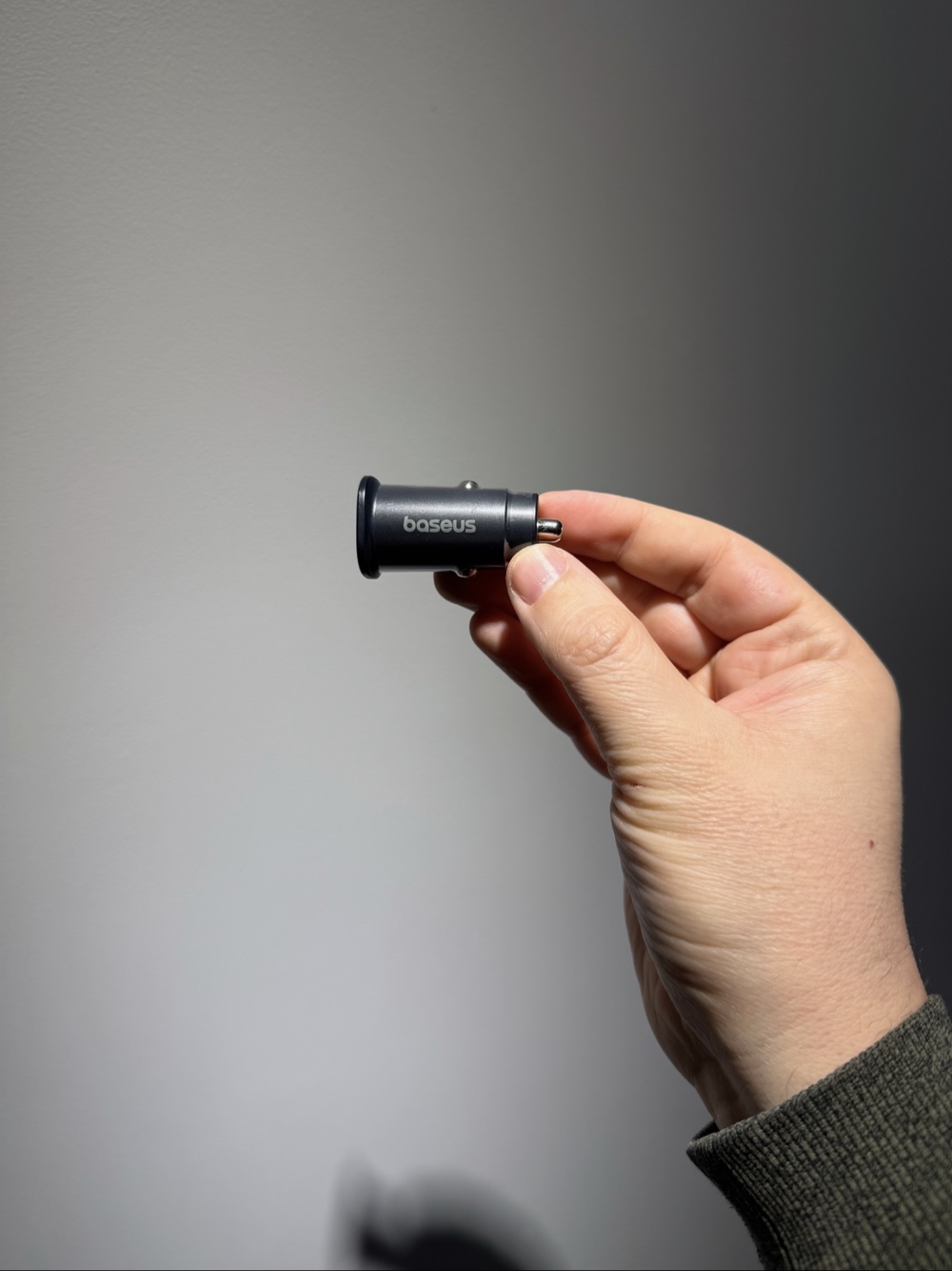 Car Baseus mini charger (adapter) with two Type C (USB C) sockets.