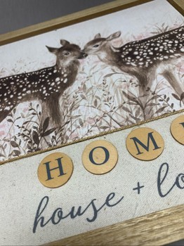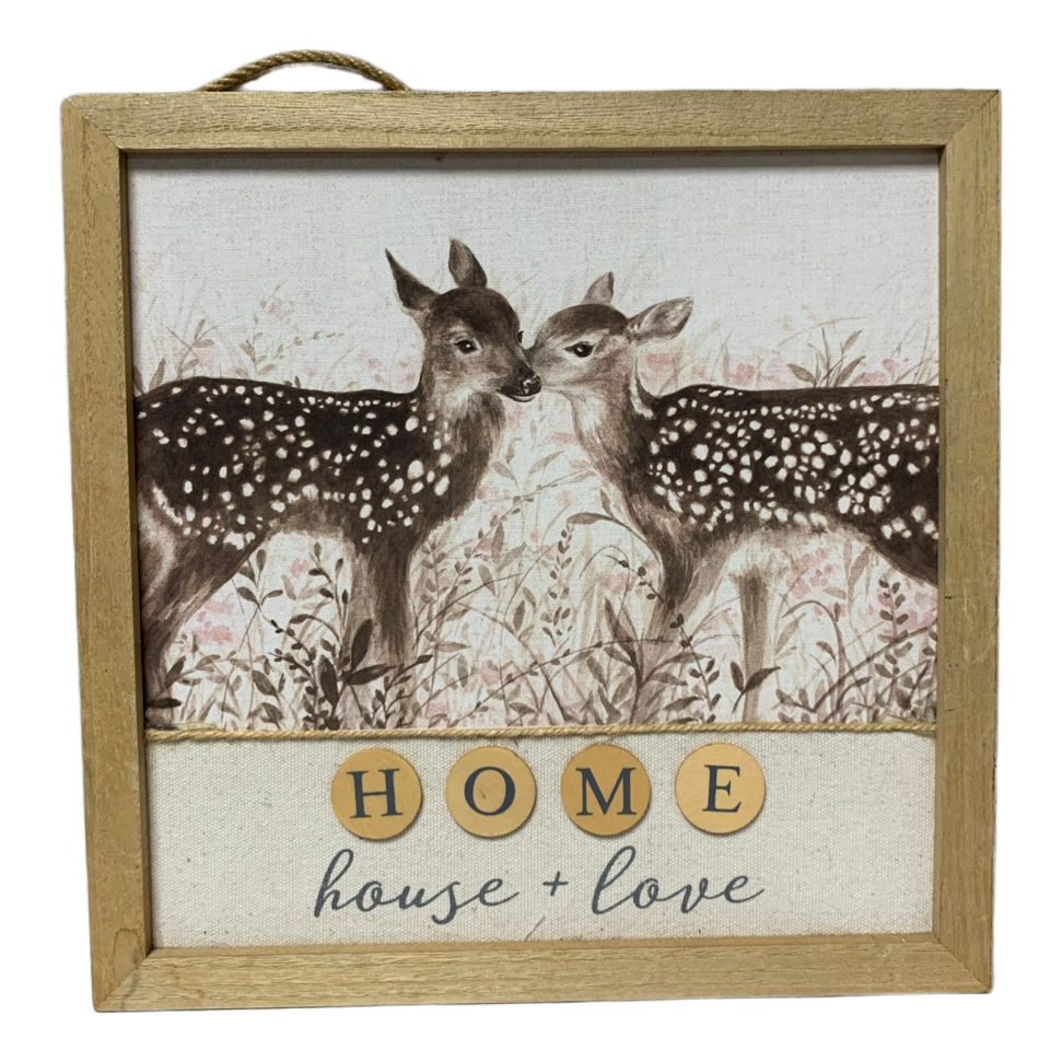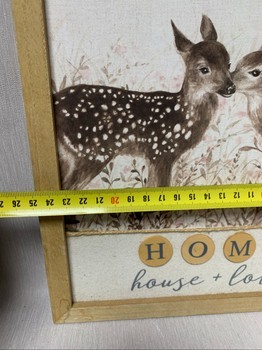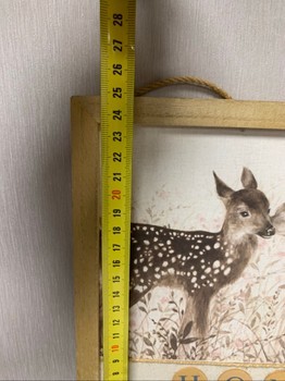 Seinakaunistus hirvepildiga. Puidust raam ja nöörist riputuskonks.