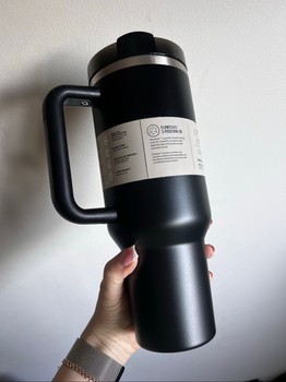 Black Stanley Quencher H2.0 tumbler with a 1.18L capacity. Features a 3-position FlowState lid and a durable handle.