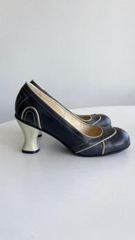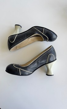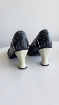 Black leather heels with a light-colored contrast block heel. Size 40. Inner sole 26 cm, heel hight 8 cm.