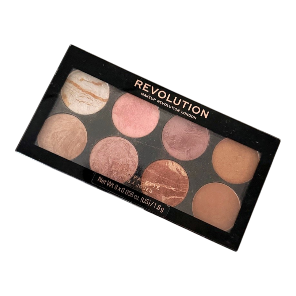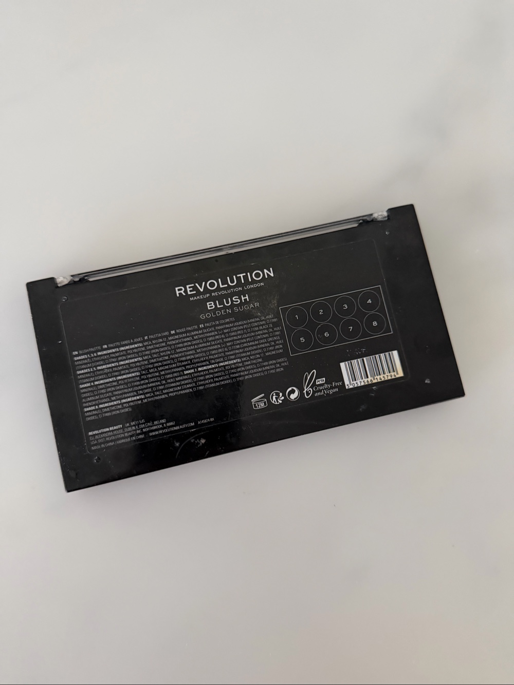 Revolution Golden Sugar blush palette. The palette has eight shades. Cruelty-free and vegan.