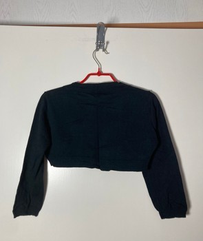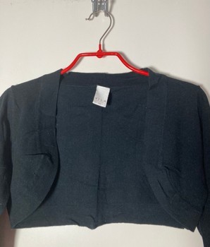 Vila black bolero, without fastening. High-quality, soft, thin and stretchy cotton knit. In excellent condition. Shoulder width about 33 cm. Chest (armpit-to-armpit) measurement on the back unstretched about 42 cm. Length about 29 cm. Sleeve length from armpit about 28 cm. Pickup possible from Helsinki. Also sold elsewhere.