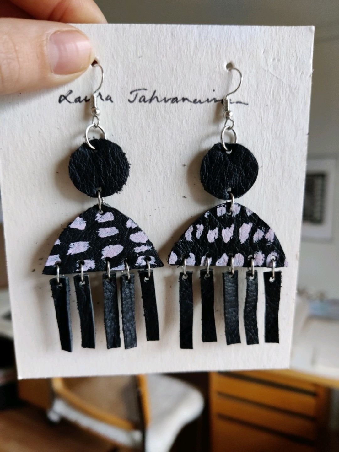 Gorgeous new tassel earrings! Made from recycled leather. Really lightweight!