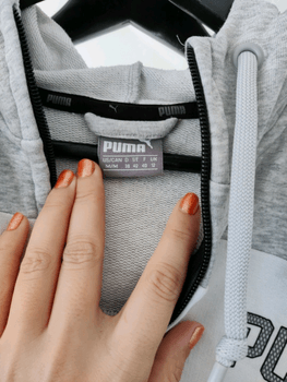 Puma's hoodie in good condition. The only 'fault' is a small faint mark on the white area, which is hardly noticeable. The mark is visible in the last picture.