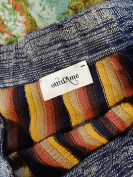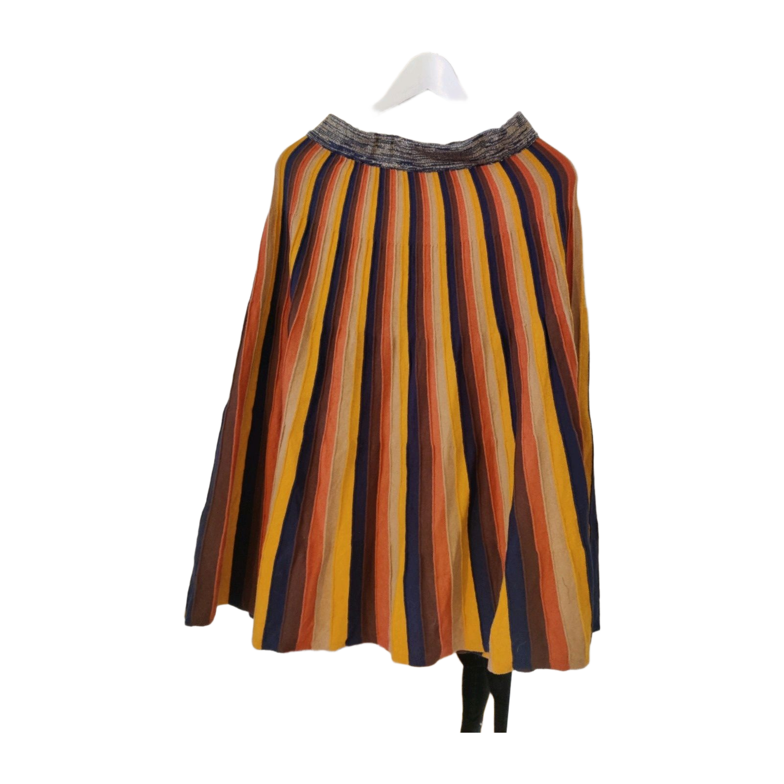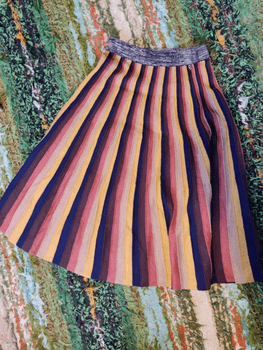 Beautiful vertically striped vintage skirt! The fabric stretches, as does the waistband, which has a wide elastic sewn in. Impeccable condition.
