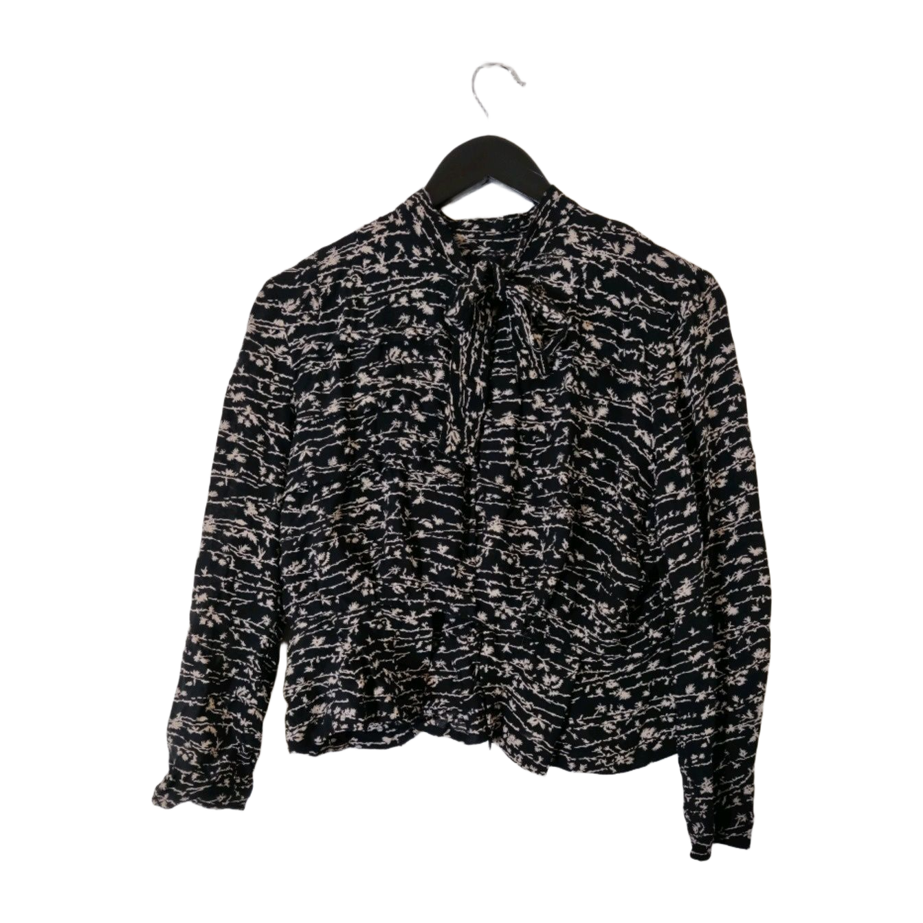 Lovely vintage blouse. Snap buttons on the front and tie straps at the top. Cropped, beautiful design.