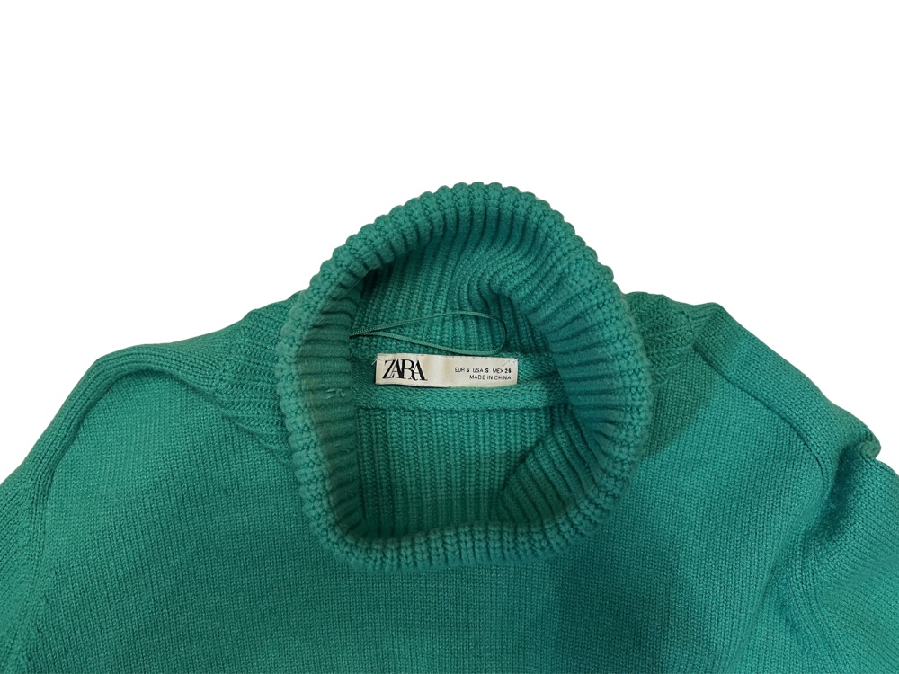 Green Zara turtleneck sweater with ribbed neckline and cuffs. Size S.