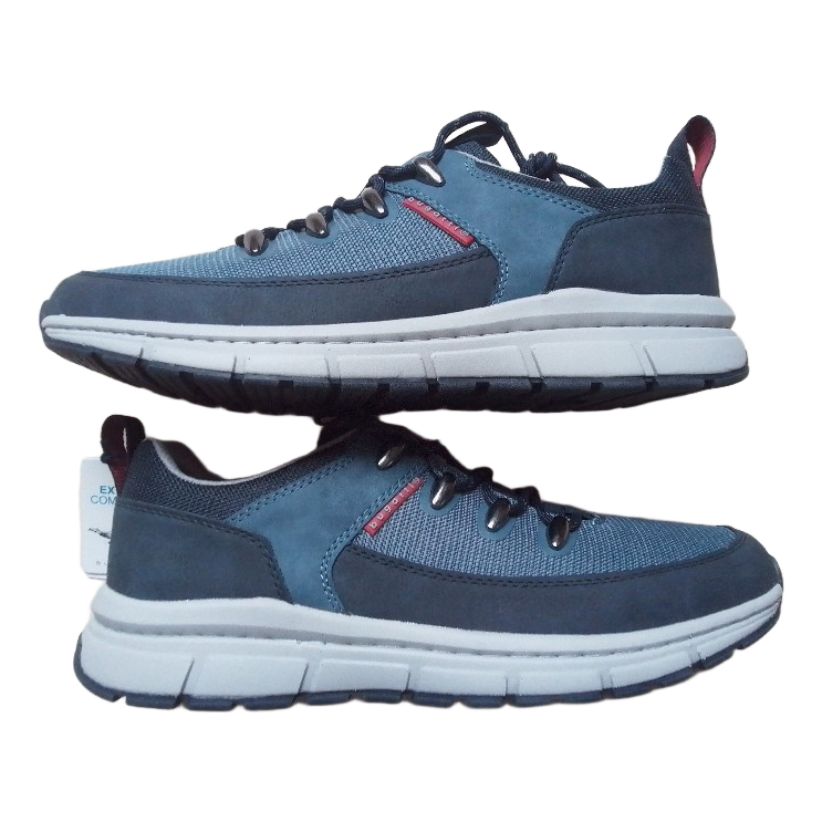 Men's blue bugatti sneakers with a mesh and synthetic upper. Thick sole and lace-up closure. Size 43.