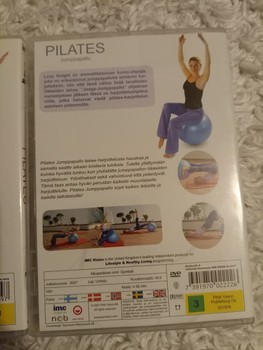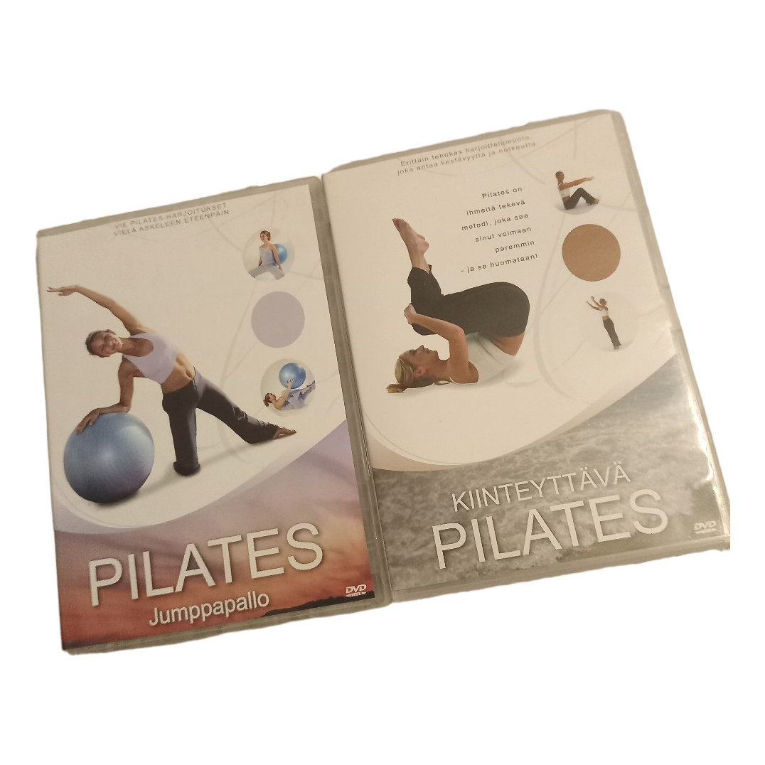 Two pieces of Pilates-themed instructional DVD discs. Includes exercises with an exercise ball as well as a toning Pilates program.