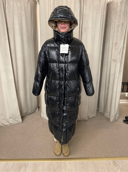 The Moncler Parnaiba Hooded Long Down Jacket for women, shown in the picture, is a luxurious long coat designed for maximum thermal comfort in freezing weather. Product Key Features Material: Made from shiny laqué nylon, which is typical of the Moncler brand for its durability and iconic look. Insulation: Filled with premium down feathers that provide excellent insulation while maintaining low weight. Cut: Oversized longer cut with distinctive stitching that reaches below the knees. Details: Features a removable hood, contrast lining and iconic Moncler logo on the sleeve.