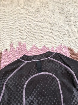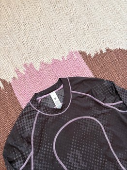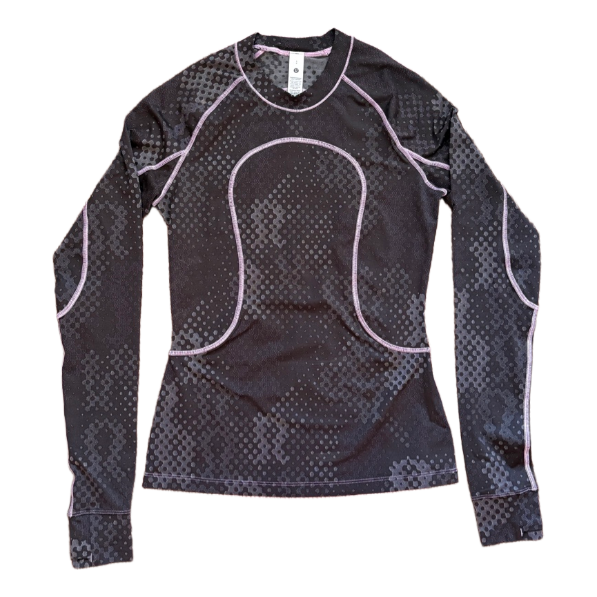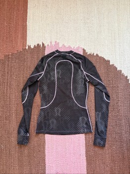 Unused Lululemon workout shirt from the SLNSH collection. Size S, fits true to size but rather small than roomy. Sleeves have thumb holes. Shoulder-to-hem approx 63 cm and armpit-to-armpit approx 42 cm. The model's exact name 'Lululemon jacquard tight fit long sleeve shirt SLNSH collection'