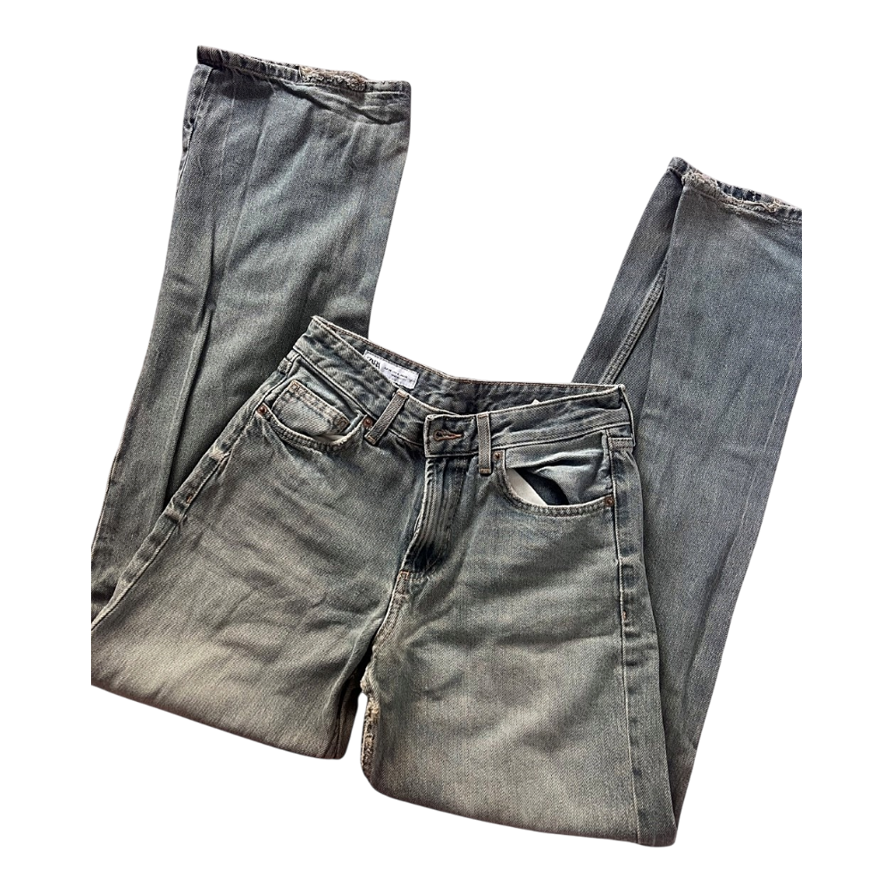 denim jeans by Zara with a vintage wash. High-waisted style, size 36.