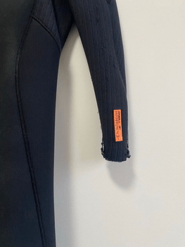 There is material wear on the sleeves / pilling, which is common for used Hyperfreak wetsuits and does not significantly affect performance or warmth.