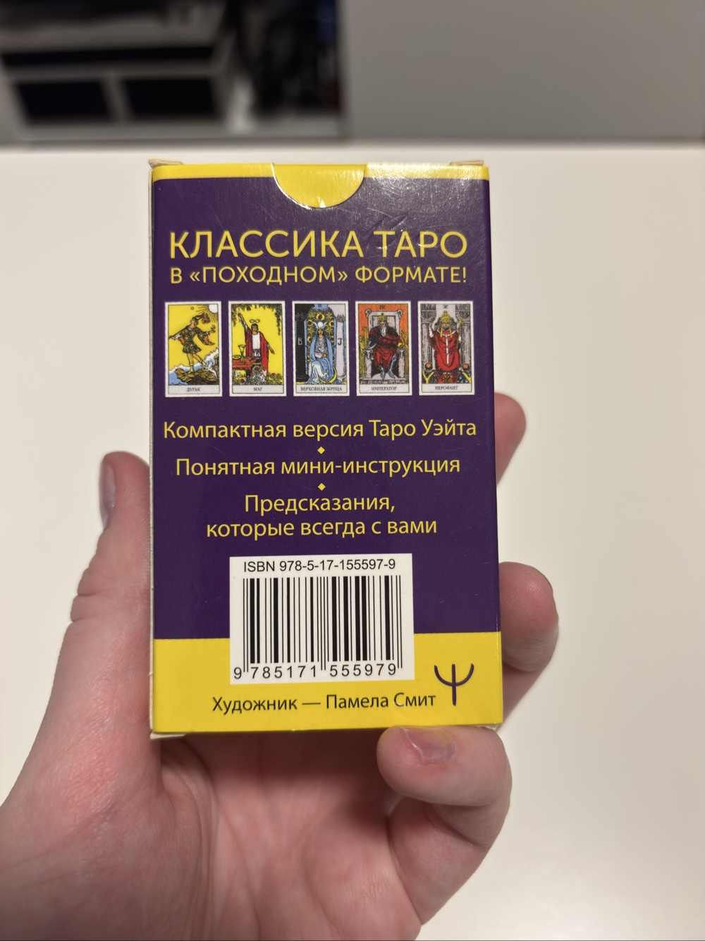 Includes a compact version of classic Tarot cards by Arthur Waite and Pamela Smith.