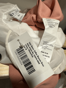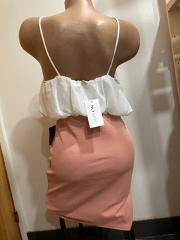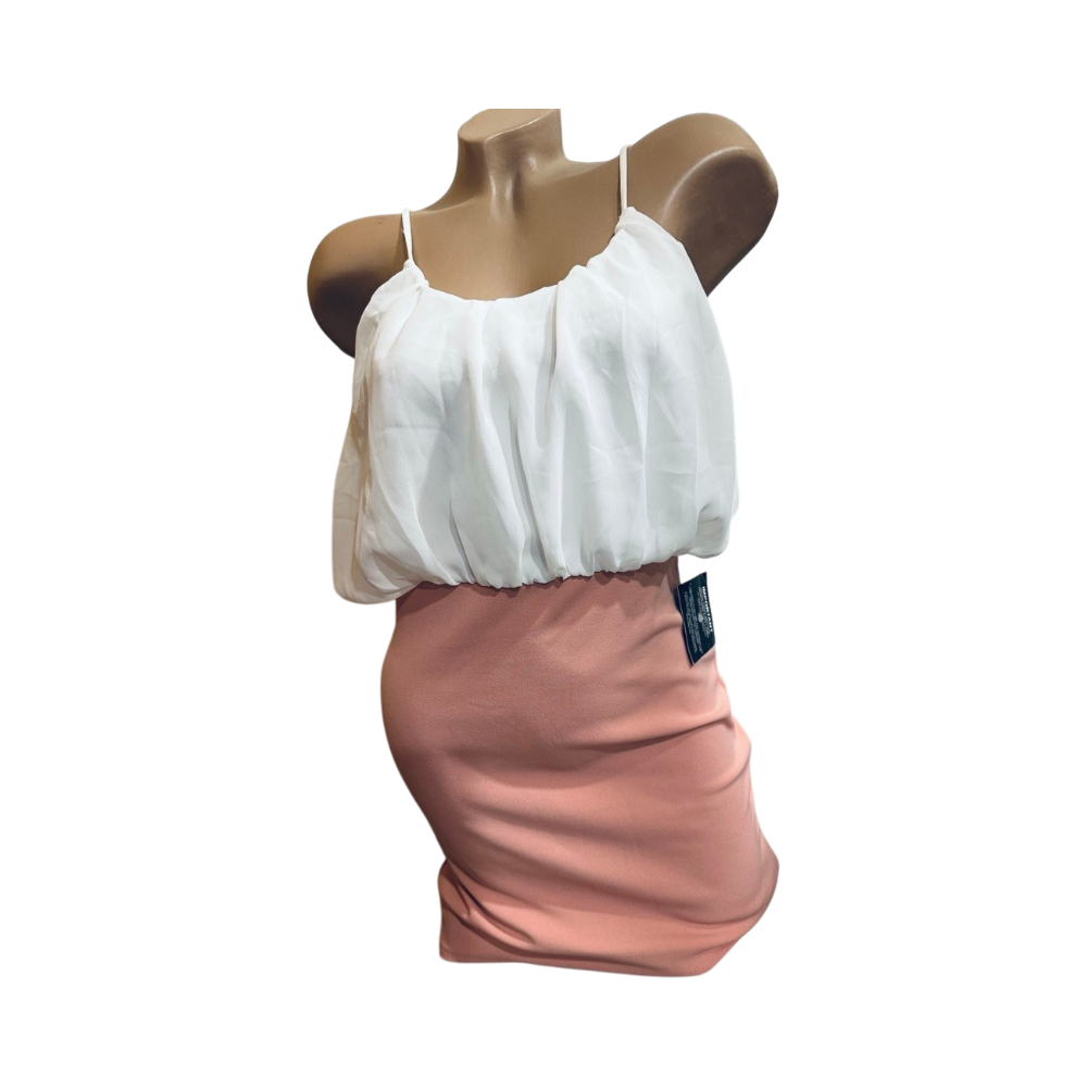 New Nly One M chiffon blouson dress. Color white and salmon. New with tags, never used. Armpit to armpit 50 x 2 cm. Length 88 cm.