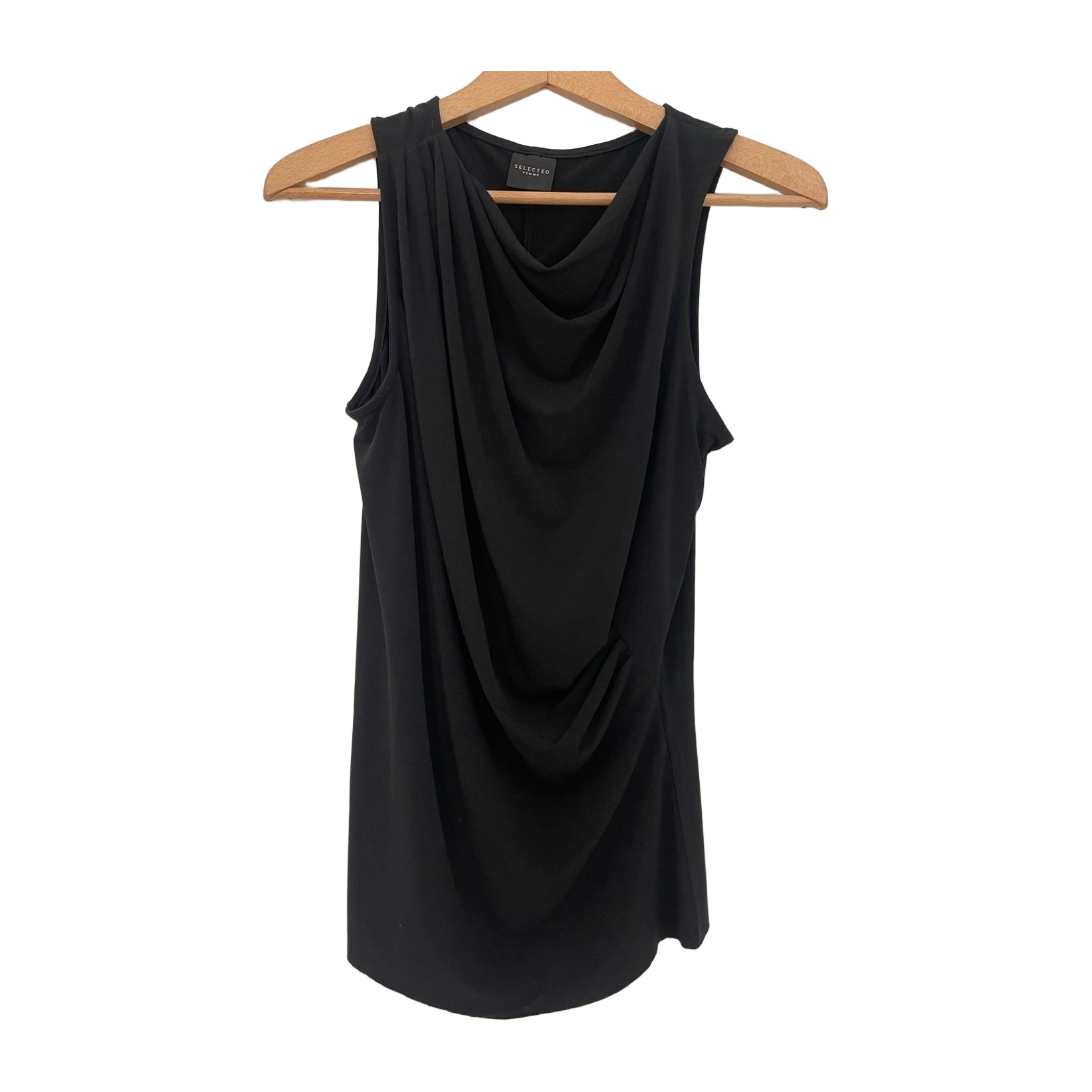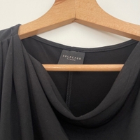 Musta kauniisti laskeutuva juhlava toppi. Takana pieni halkio. Tosi nätti. Ei vaan käyttöä. Uutta vastaavassa kunnossa. Käytetty kerran/kaksi.