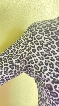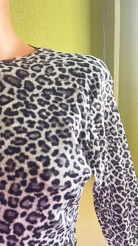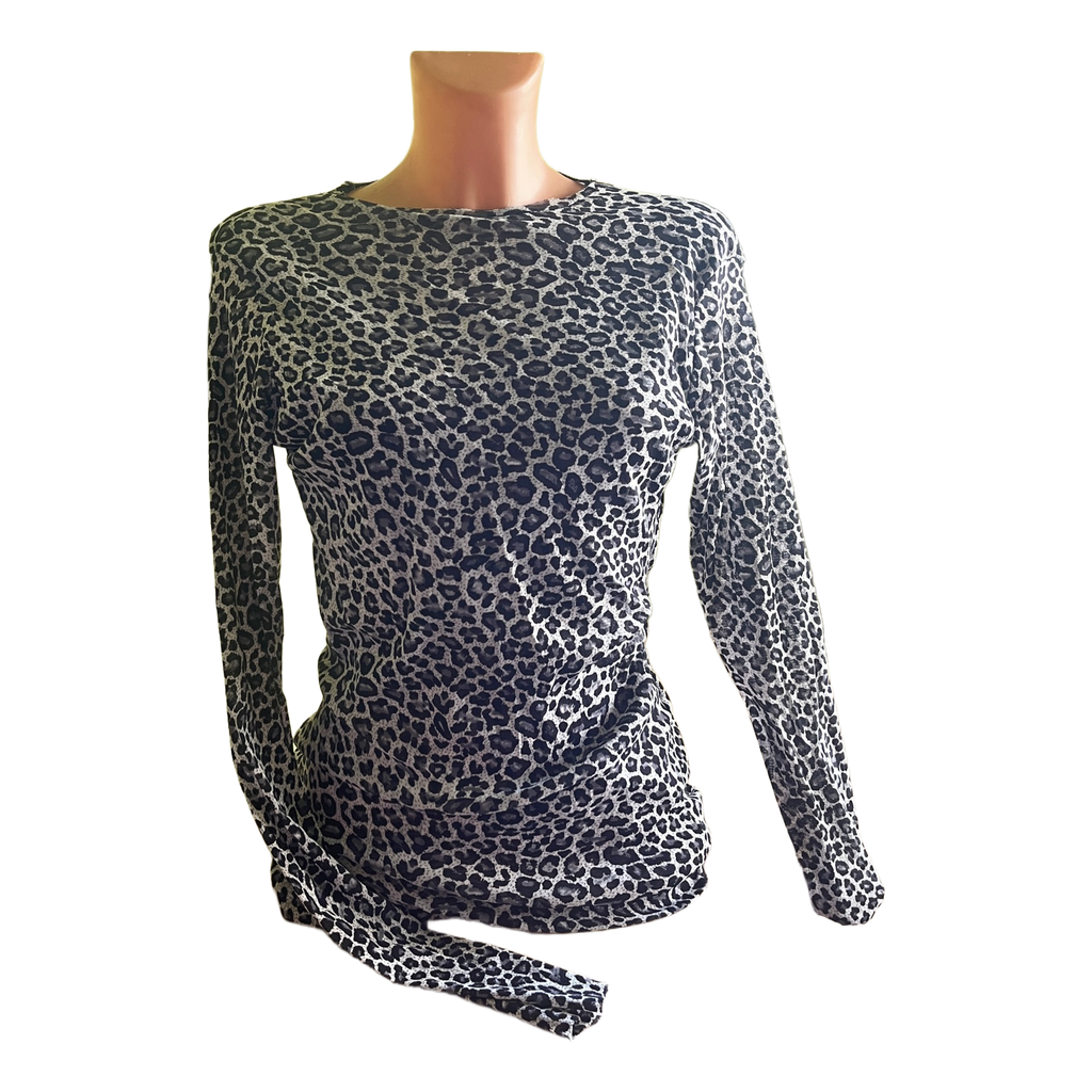 Long-sleeved top with a grey and black leopard print pattern.