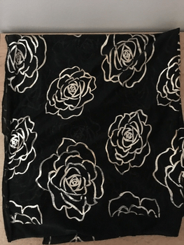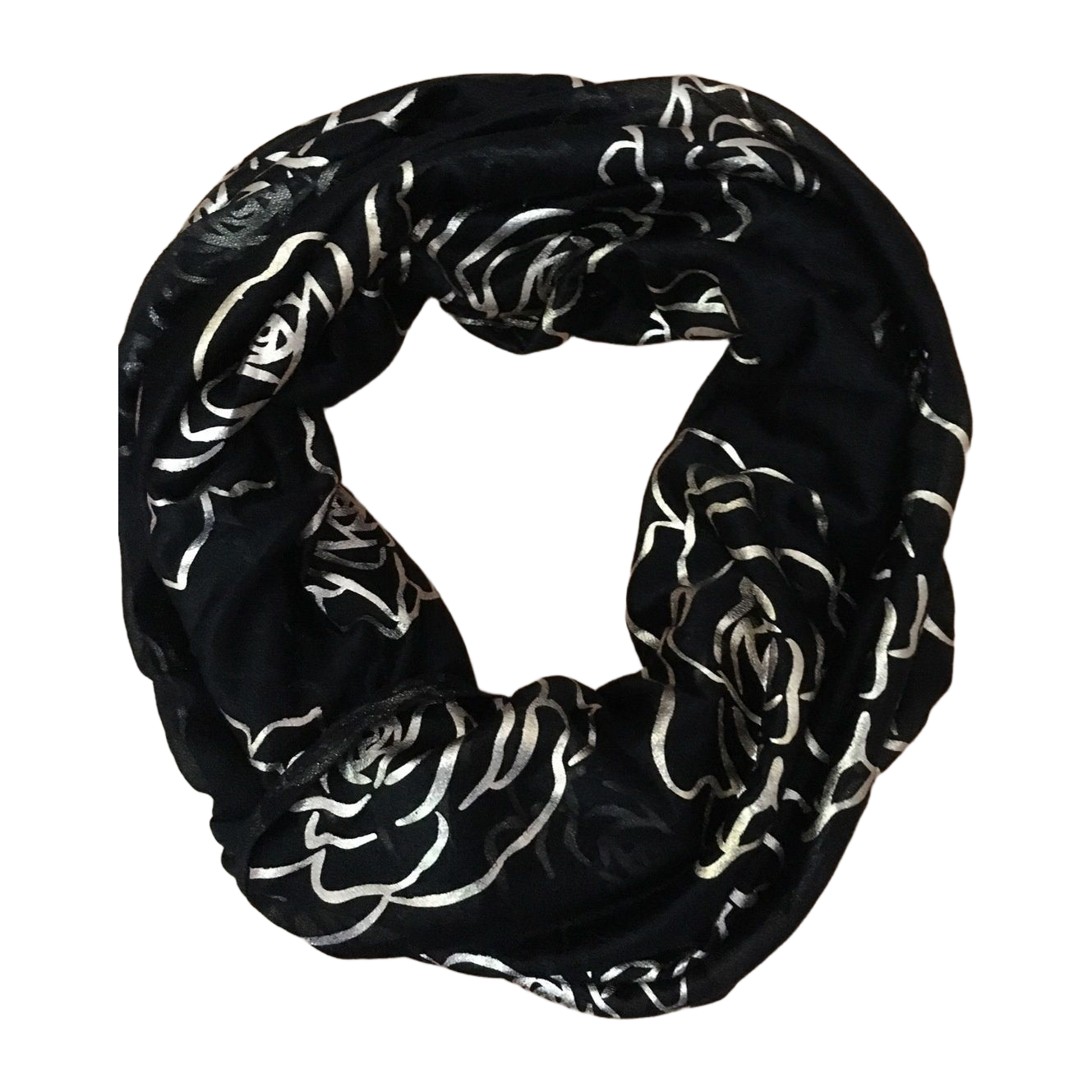 Black tube scarf with gold-colored flower decorations. The scarf is unused. Suitable for e.g. parties. Offers only for buying purposes, thanks!